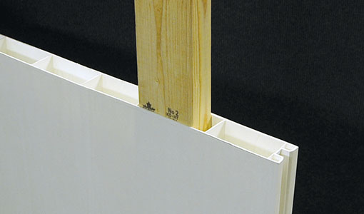 1-3/4″ x 32″ PVC wall plank is designed to accommodate 2×4 lumber for added strength.